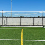 Built with heavy-duty 4” round aluminum uprights, crossbar, bases, and ground bar, the PEVO Stadium Series STB goal makes a bold visual statement while remaining surprisingly easy to move and manage. Adjustable stanchions allow you to tension the net tightly, creating a crisp, professional box appearance that players love and spectators notice immediately.